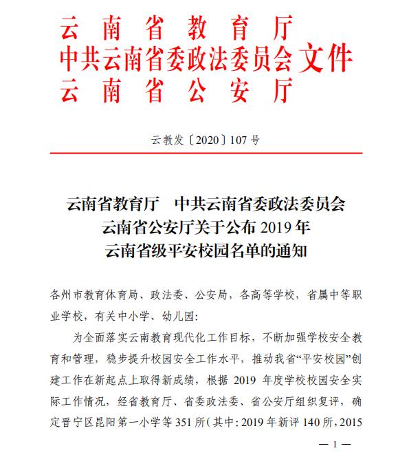 关于公布2019年云南省级平安校园名单的通知.pdf