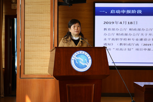 2021年1月21日上午,学院在1栋5楼报告厅召开“双高”建设项目年度总结大会暨“双高”建设推进会。学院领导、中层干部、“双高”建设子项目负责人及团队成员、各二级学院(部)专业组组长(教研室主任)、“双高”办公室全体人员参会,会议由学院双高建设工作领导小组办公室主任、学院副院长邹丽主持。