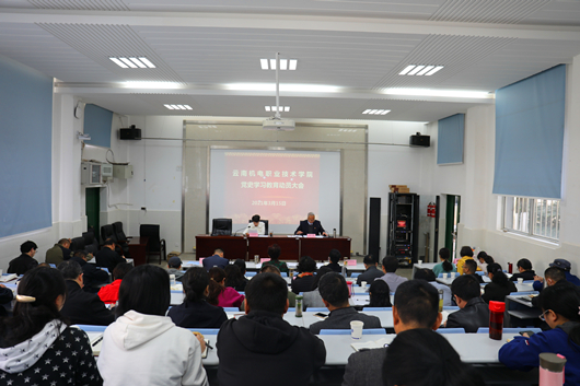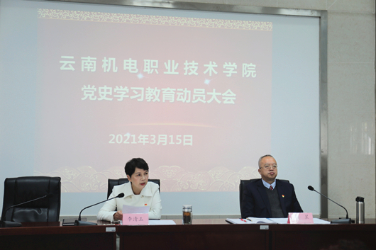 李清玉书记强调,要聚焦学史明理、学史增信、学史崇德、学史力行,准确把握党史学习教育的目标要求。要按照中央、省委、省委教育工委的部署,坚持以习近平新时代中囯特色社会主义思想为指导,深入学习贯彻习近平总书记关于教育的重要论述和考察云南重要讲话精神,紧紧围绕学懂弄通做实党的理论创新,巩固深化“不忘初心、牢记使命”主题教育成果,坚持学习党史与学习新中国史、改革开放史、社会主义发展史相贯通,与学习中国共产党云南历史相结合,推动党史学习教育走深走实走心,教育引导全院广大党员、干部、师生增强“四个意识”、坚定“四个自信”、做到“两个维护”,守正创新抓住机遇,锐意进取开新局,深入落实立德树人根本任务,努力把我院建设成“支撑云南制造,引领西部职教,国内一流,辐射南亚东南亚,在国际上有影响力的中国特色高水平职业院校”。