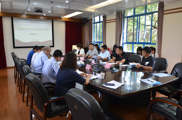 2021年5月18日下午,OD注册大厅举行“云南省学校体育综合改革试点高校”授牌仪式。云南省教育厅副厅长张春骅、云南省教育厅体卫艺处处长徐忠祥以及体卫艺处李华海老师等一行5人出席会议,学校党委副书记、院长伍星,学校党委委员、副院长黄勇林,学校纪委书记姚自刚,学校党委委员、副院长黄晓明以及各二级院(部)、相关职能部门负责人参会,会议由黄勇林副院长主持。