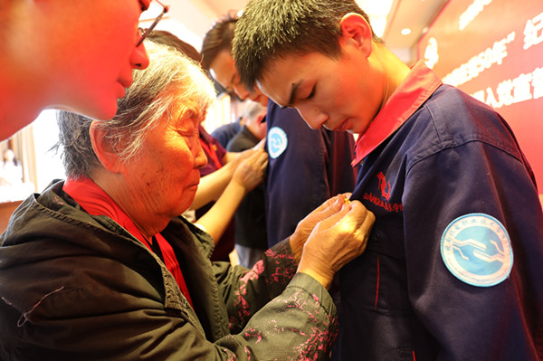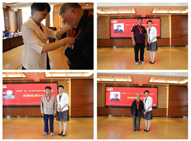活动中,李清玉逐一为获得“光荣在党50年”纪念章的老同志佩戴纪念章。