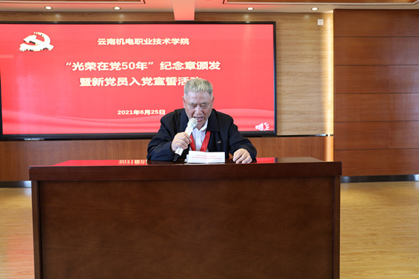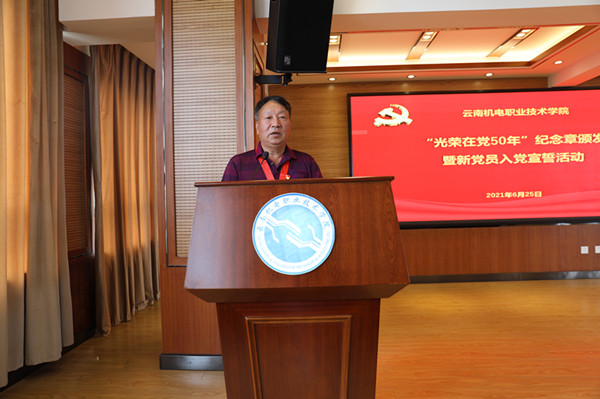 李清玉对为学院发展做出了不可磨灭的历史功绩和巨大贡献的老同志表示诚挚的慰问和衷心的感谢!她指出,为“光荣在党50年”老党员颁发纪念章,在党的历史上是第一次,这项工作是中国共产党成立100周年庆祝活动的重要组成部分,是党中央赋予广大老党员的一份重要荣誉,对于增强党员的荣誉感、归属感、使命感,汇聚全党为实现“十四五”规划和2035年远景目标持续奋斗的磅礴力量,具有十分重要的意义。学院从省级示范院校到国家骨干高职院校,再到三全育人试点校、国家“双高计划”建设单位,这些成绩的取得离不开先辈们的铺垫和积累。李清玉号召学院全体党员要向老党员学习,用实际行动诠释对共产主义的坚定信念,对党和人民的绝对忠诚,志存高远,务实求新,甘于奉献。结合党史学习教育“学党史、悟思想、办实事、开新局”,为学院“十四五”启程和双高建设贡献力量,推动学院在新征程中乘风破浪、行稳致远。