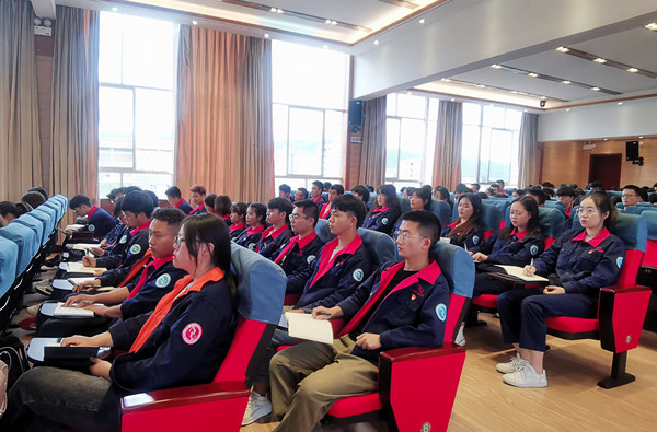 2021年7月16日上午,我校举办【党史学习教育】学习贯彻落实习近平总书记“七一”重要讲话精神暨2021年领导干部轮训、“万名党员进党校”开班仪式。校党委书记李清玉带头示范,作开班第一讲。校领导、中层干部、全体党员和学生预备党员共计300余人参加开班仪式并聆听了专题讲座,开班仪式由校党委副书记朱丽辉主持。