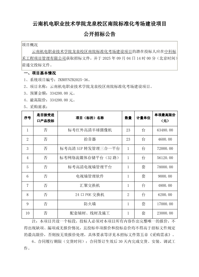 OD注册大厅龙泉校区南院标准化考场建设项目 公开招标公告