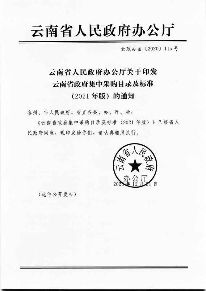 云南省政府集中采购目录及标准(2021年版)